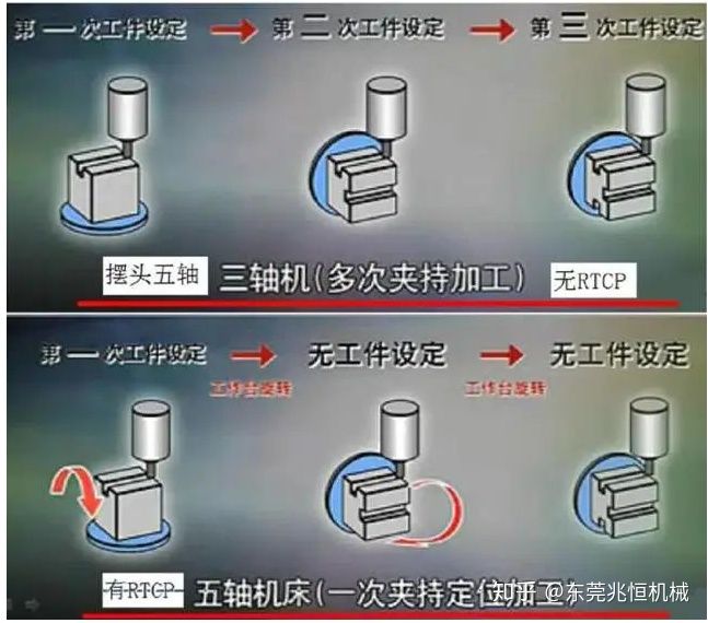 這是通俗的說法,并不是規(guī)范的說法,一般說來,五軸機床分兩種:一種是五軸聯(lián)動,即五個軸都可以同時聯(lián)動,另外一種是五軸定位加工,實際上是五軸三聯(lián)動:即兩個旋轉(zhuǎn)軸旋轉(zhuǎn)定位,只有3個軸可以同時聯(lián)動加工,這種俗稱3+2模式的五軸機床,也可以理解為假五軸。